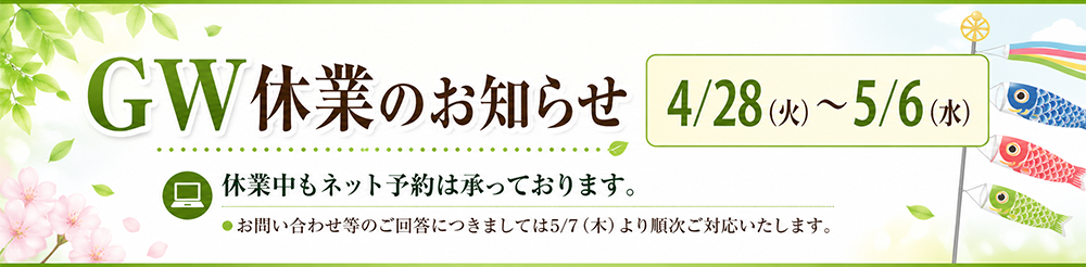 | 定休日 | 火曜・GW・夏期休暇・年末年始 |